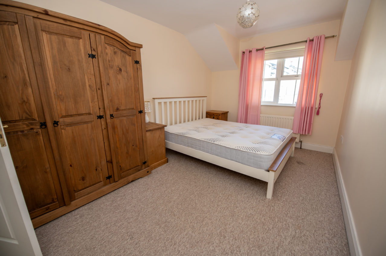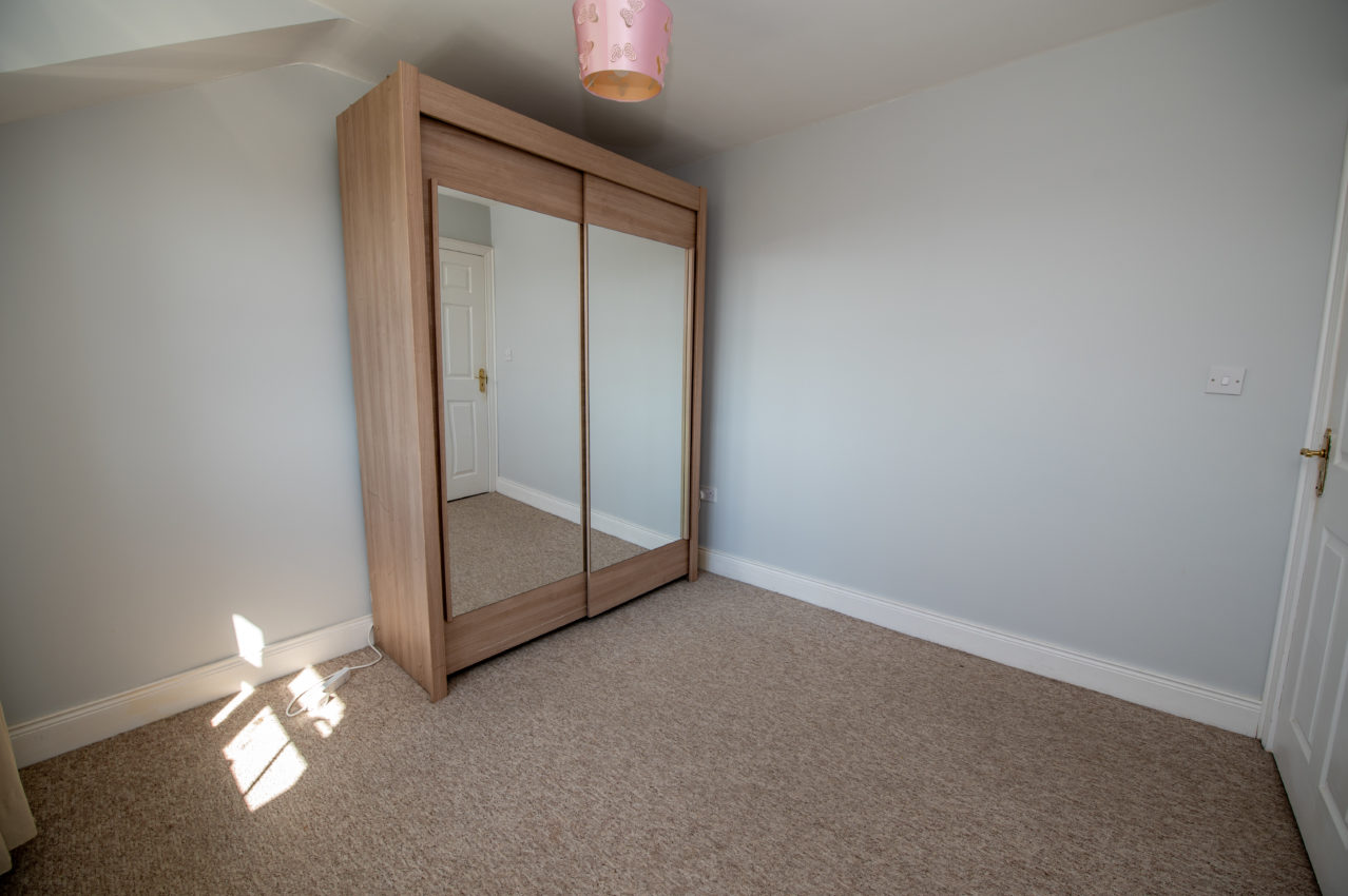Bedroom 2; (front) 3.12m x 2.26m  carpeted floor with built-in wardrobe, views over the children’s play area