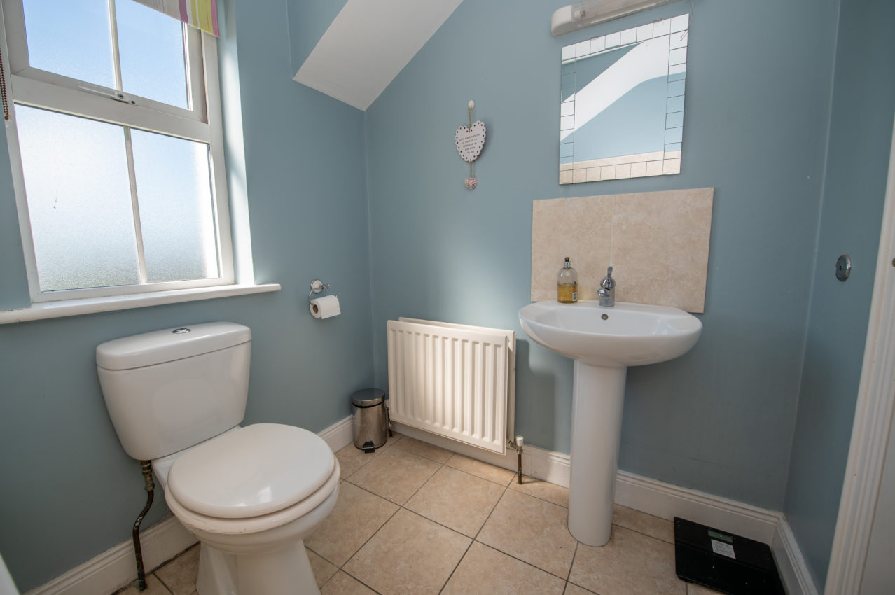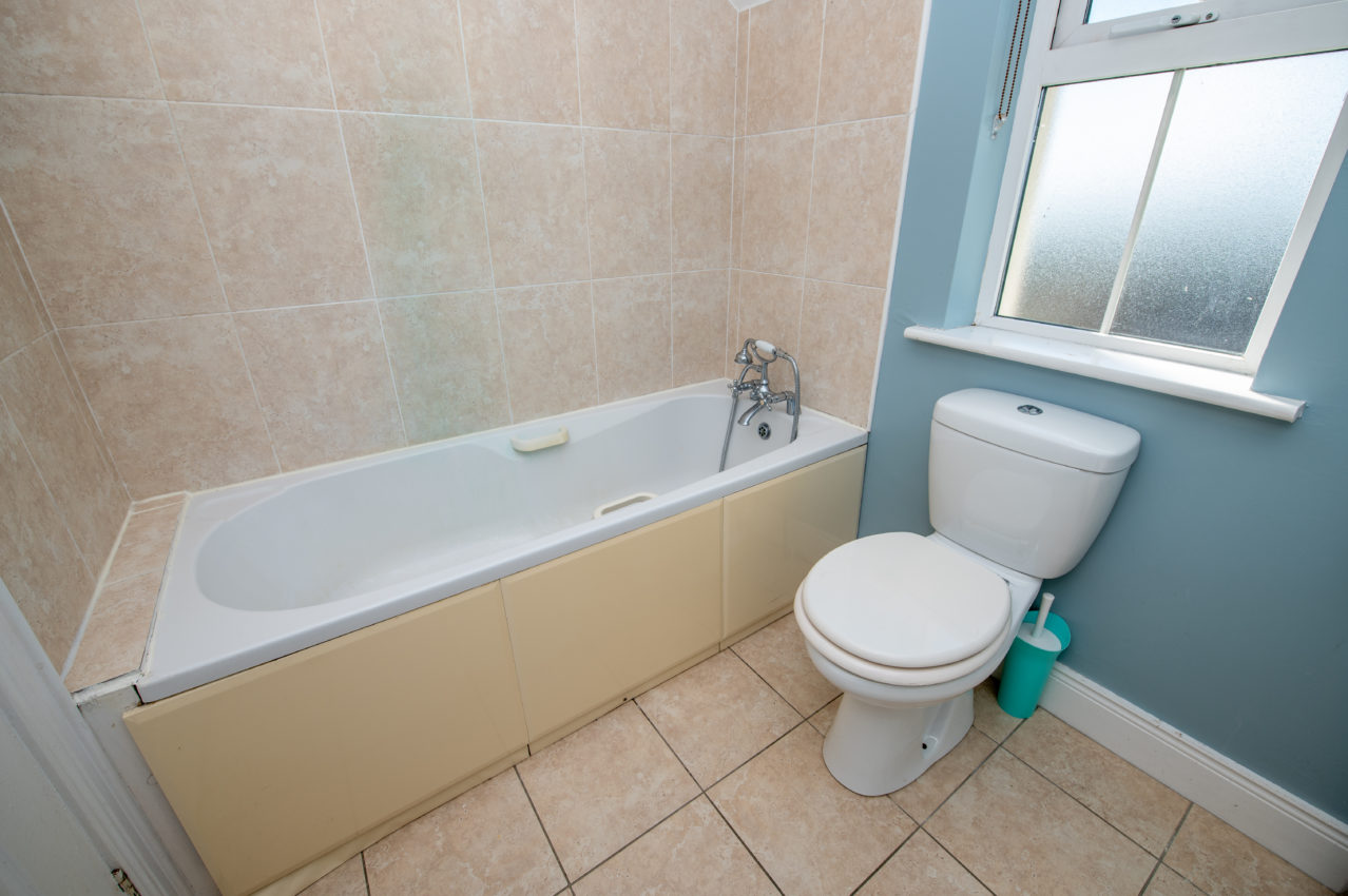 Family Bathroom; 1.79m x 2.10m  spacious, white 3 piece suite with telephone mixer taps over the bath, tiled floor, tiled splashback to wash hand basin, shaver light & socket