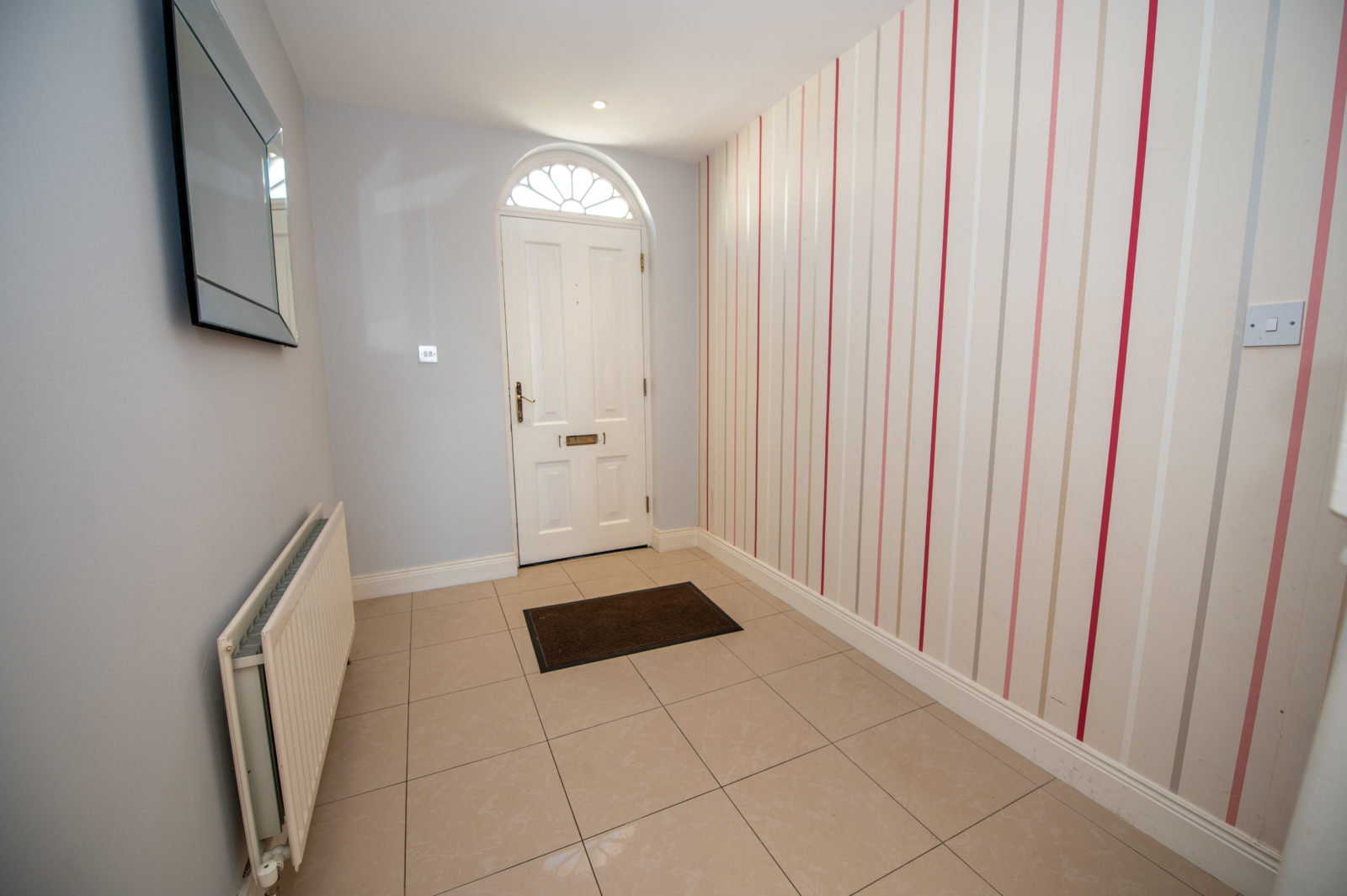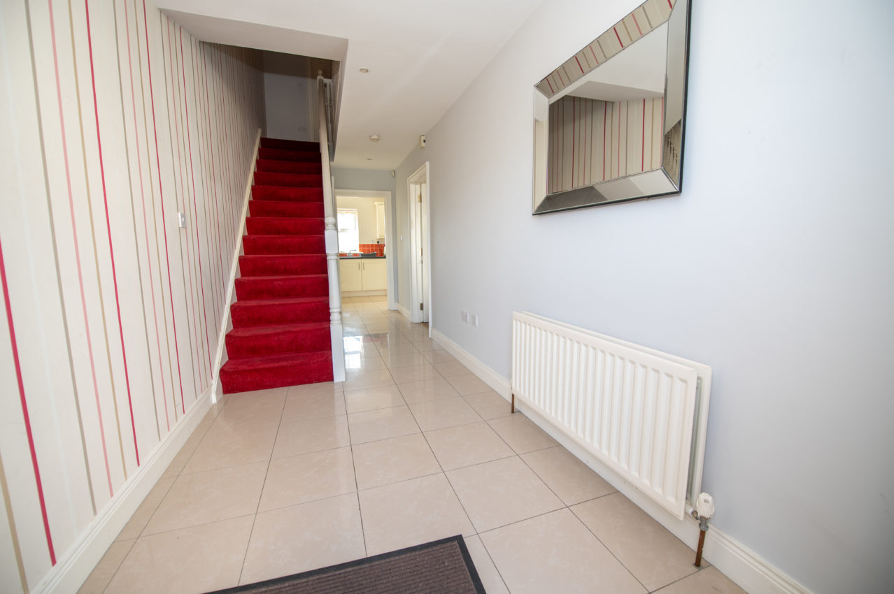 Entrance Hallway; 6.17m x 2.03m  hexagonal tiled floor, built-in storage under the stairs, recessed lighting