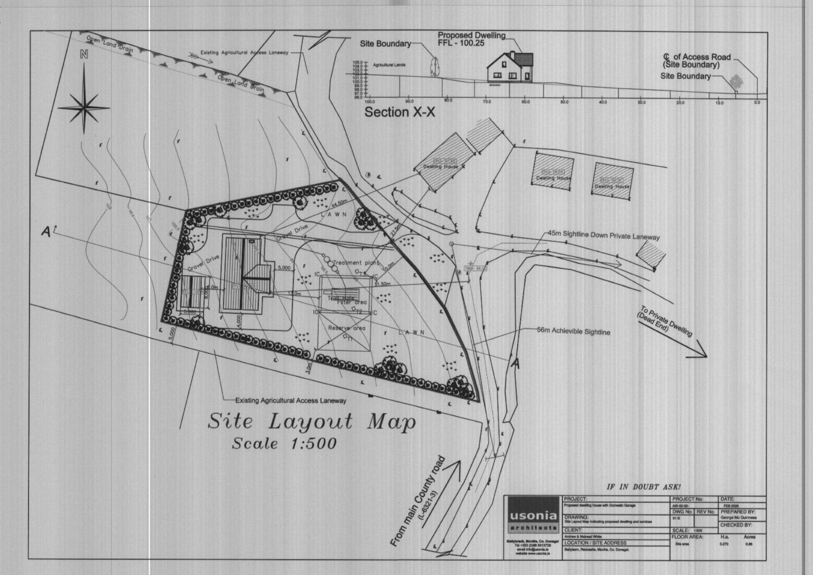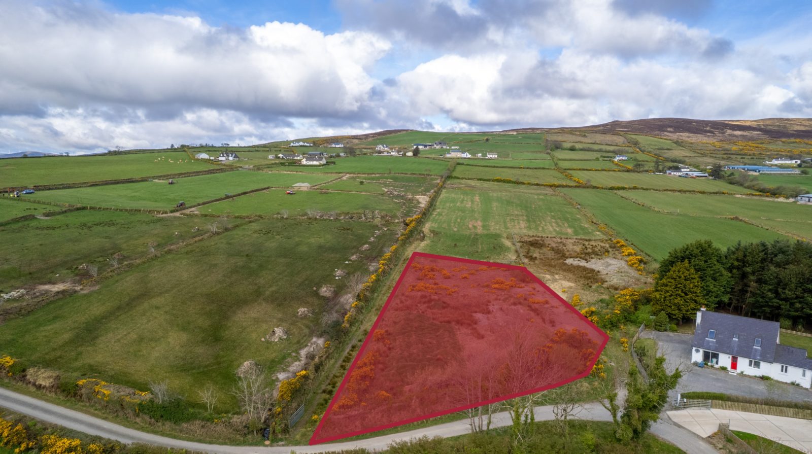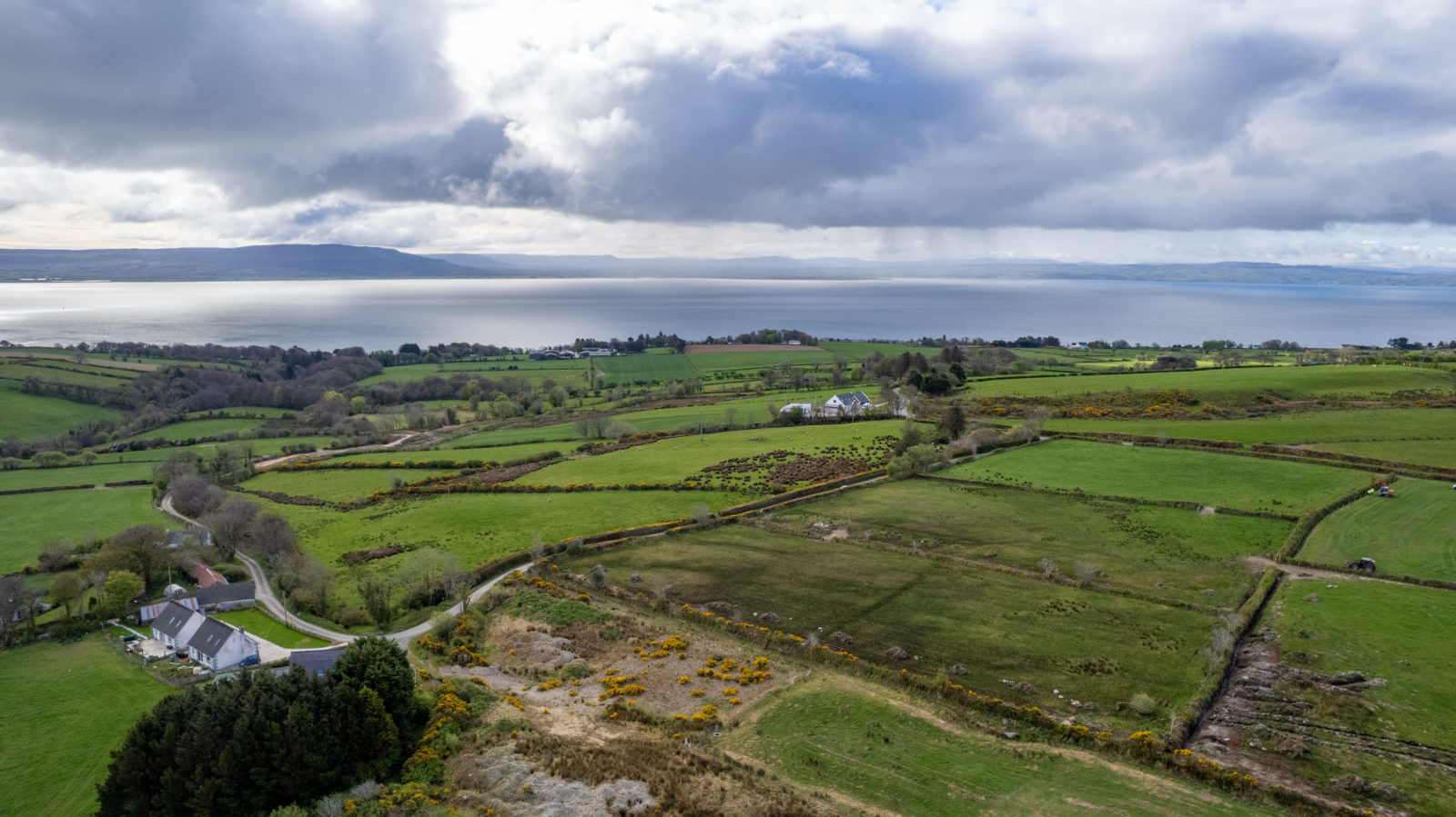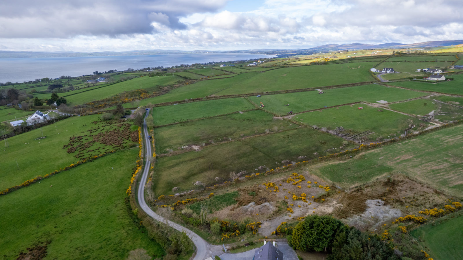 From Moville proceeded in the direction of Quiggley‘s Point for 1.5km and turn right into the Ballylawn Road. Continue for 2km and turn right at a small cottage on the corner and continue along this road for 300 meters in the site will be found on the left-hand side identified by Franklins ‘For Sale’ sign